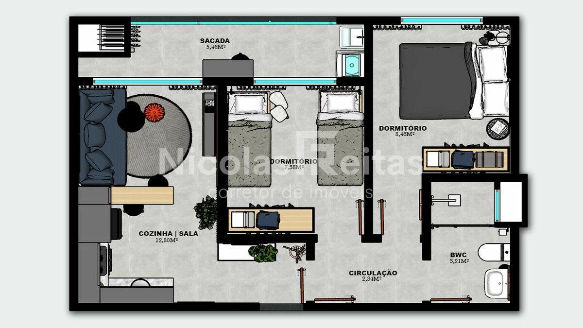 Apartamento com alta qualidade de acabamentos e plantas funcionais para o maior conforto e bem-estar.
